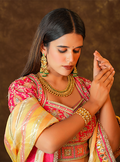 The Polki Panache Kundan Meena Bangle is an exquisite representation of traditional artistry and opulent design. This bangle features a seamless combination of Polki stones and Kundan work, accentuated by intricate Meenakari details that add a splash of color and elegance. Perfect for weddings, festive celebrations, and grand occasions, this bangle embodies timeless beauty and sophistication. Its meticulous craftsmanship and luxurious embellishments make it a statement accessory that enhances any traditional ensemble with unparalleled grace and charm.